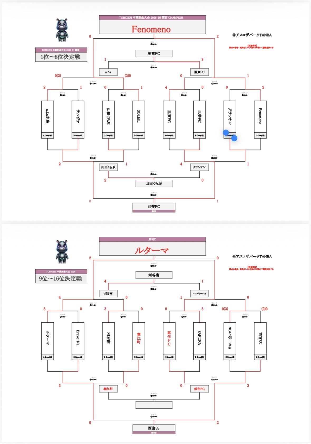 TOP › フォーラム › 山くら掲示板 › TOBIGERI卒業記念大会in関西(2日目) TOBIGERI卒業記念大会in関西(2日目) このトピックは空です。 4件の投稿を表示中 - 1 - 4件目 (全4件中) 投稿者 投稿 2026年2月1日 10:12 PM #35687 返信 6年生保護者26ゲスト 活動日:2026年2月1日 TOBIGERI卒業記念大会(合宿2日目)に6年生12名で参加させて頂きました。 1試合目 山くら 0-1 SOLEIL SAKAI F.C 2試合目 山くら 1-2 サルヴェジソウザ 3試合目 山くら 2-0 FCグラシオン 結果:16チーム中7位 主催者のTOBIGERIの皆様、アスコザパーク関係者様、対戦相手の皆様ありがとうごいました。 田井コーチ、2日間引率、ご指導ありがとうごいました。 保護者の皆様、寒い中応援お疲れ様でした。 2026年2月1日 10:15 PM #35689 返信 6年生保護者26ゲスト 2026年2月1日 10:16 PM #35690 返信 6年生保護者26ゲスト 2026年2月1日 10:16 PM #35691 返信 6年生保護者26ゲスト 投稿者 投稿 4件の投稿を表示中 - 1 - 4件目 (全4件中) 返信先: TOBIGERI卒業記念大会in関西(2日目) あなたの情報: お名前 (必須) メール (非公開) (必須): ウェブサイト: ビジュアル コード 送信
